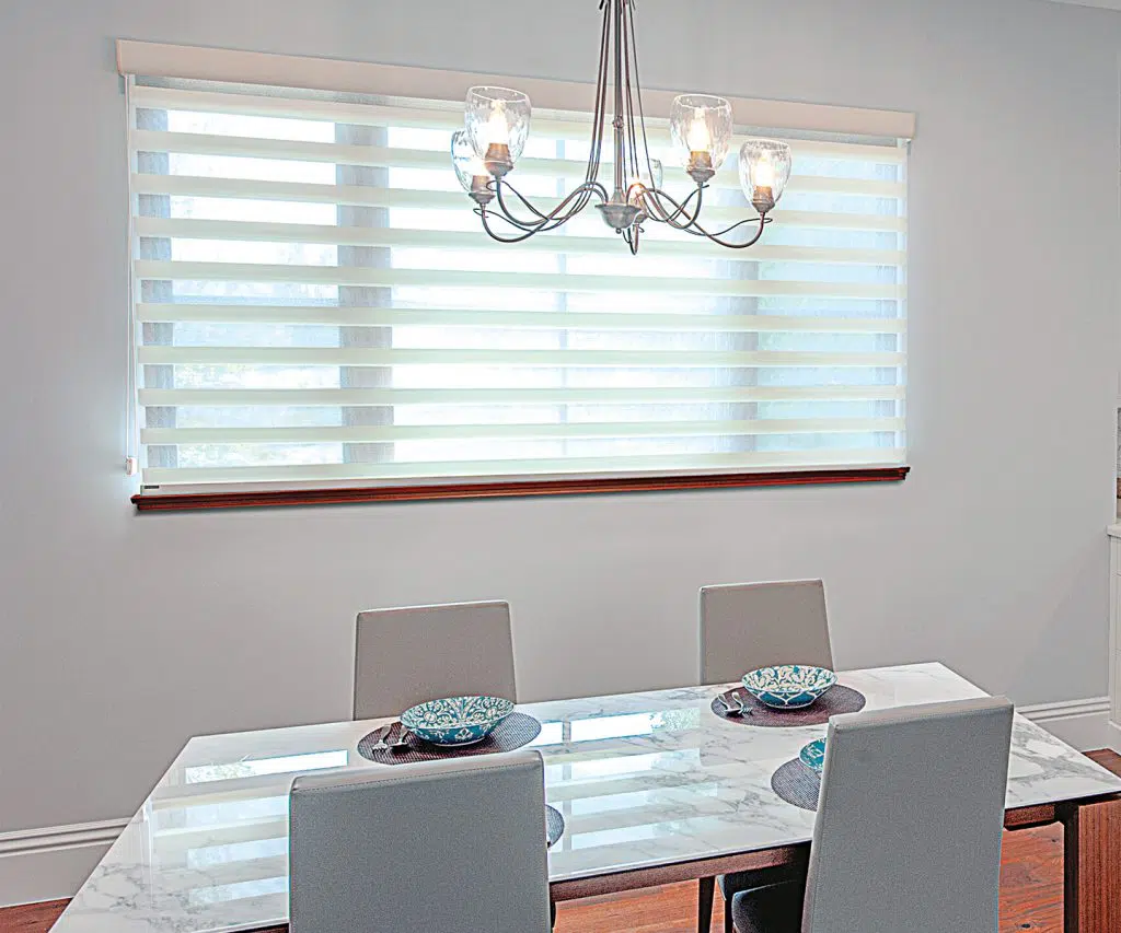 Norman® SmartDrape® shades are a type of window treatment that can be used in both the farmhouse style and other settings. They are available in a variety of colors & patterns and can be customized to fit almost any window size. The shades give the windows an airy appearance and can help to create a cozy, inviting atmosphere. However, they are also an excellent choice for those who need to provide privacy at dinnertime. Whatever your unique reason for choosing them, Norman® SmartDrape® shades are an effective way to improve the appearance of any dining room window.