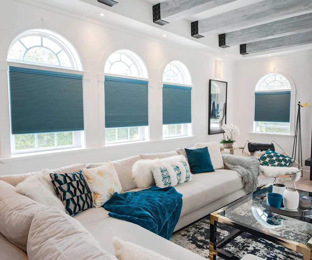 Norman®’s Portrait™ Honeycomb shades are a popular choice for farmhouse window treatments because they add both style and function to a room. They can be used to block out sunlight and insulate against heat and cold. Honeycomb shades are also highly customizable from their wide range of light filtering or room darkening fabrics and designer prints, providing a shade that matches the specific farmhouse inspired style you’re looking for.