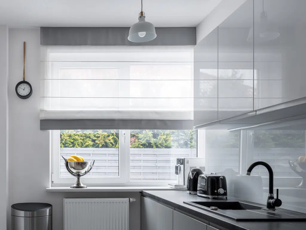 Roman shades are a versatile and modern kitchen window treatment option. They can be made from a variety of materials, including light-filtering or blackout fabrics, making them perfect for any kitchen. Roman shades are also available in a range of colors and patterns, so you can find the perfect shade to match your kitchen’s style.