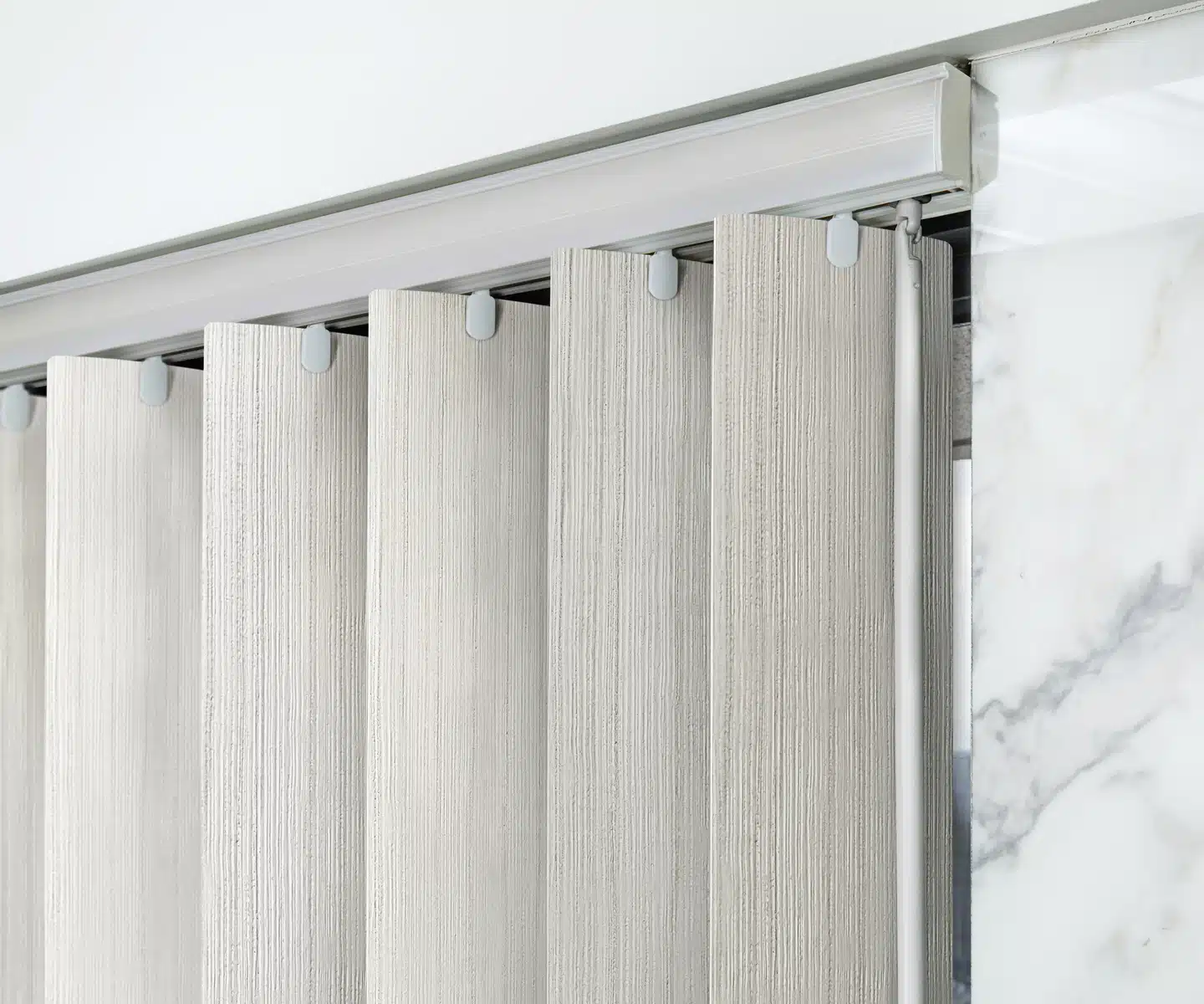 Offering the utmost in dependability and UV protection, Synchrony™ Vertical Blinds appeal to nearly any room design and offer an array of colors, textures, and advanced features that will elevate your style, comfort, and safety, including flame resistant technology.