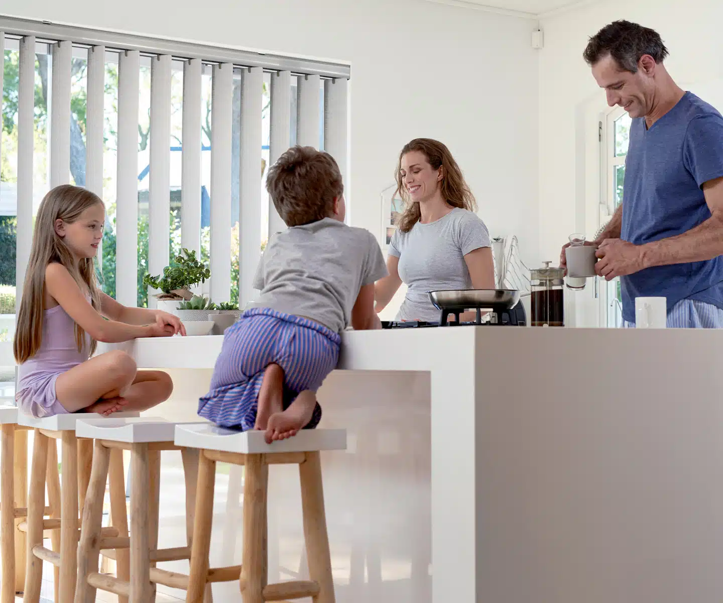 The cordless design of our vertical blinds operates effortlessly and has been certified "Best for Kids™" making it a child and pet friendly option.