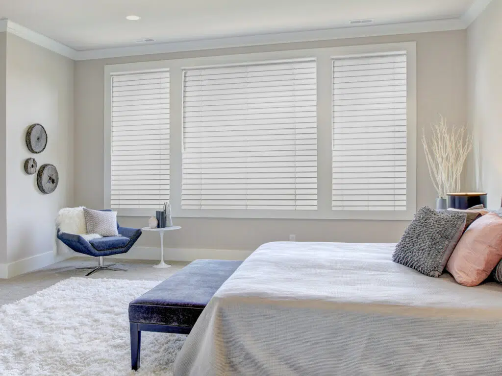 And if you’re going with blinds, make sure the headrail doesn’t add any extra visual clutter to the room. This will help create a sleek and seamless look that is in line with the minimalist aesthetic. The Ultimate™ faux wood blinds come standard with low profile, valance free headrails making it easy to achieve this desired effect without the addition of a sometimes bulky looking valance.