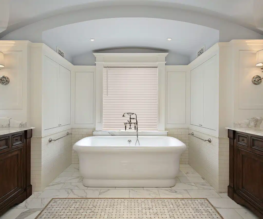 For bathrooms with large windows, consider window treatments that help you economize air intake and ventilation. Choices that allow you to open portions of the covering while leaving other parts closed are great for air circulation while maintaining a level of privacy. This helps keep prying eyes out while allowing ventilation through the exposed portion.