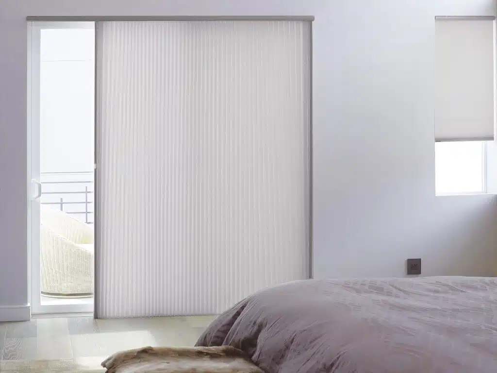 Patio doors call for a smooth-gliding, energy-efficient solution—and Norman®’s Patio Door Vertical Honeycomb delivers exactly that. Available in ¾″ and 1¼″ single-cell sizes, these shades operate on a sleek, low-profile track system. Choose from stack left, stack right, traveling center, or center opening configurations to suit your space. The honeycomb design traps insulating air pockets to block winter drafts and reduce summer heat, all while offering the same clean look and reliable performance as horizontal honeycomb shades. They are perfect for bedrooms and living rooms.