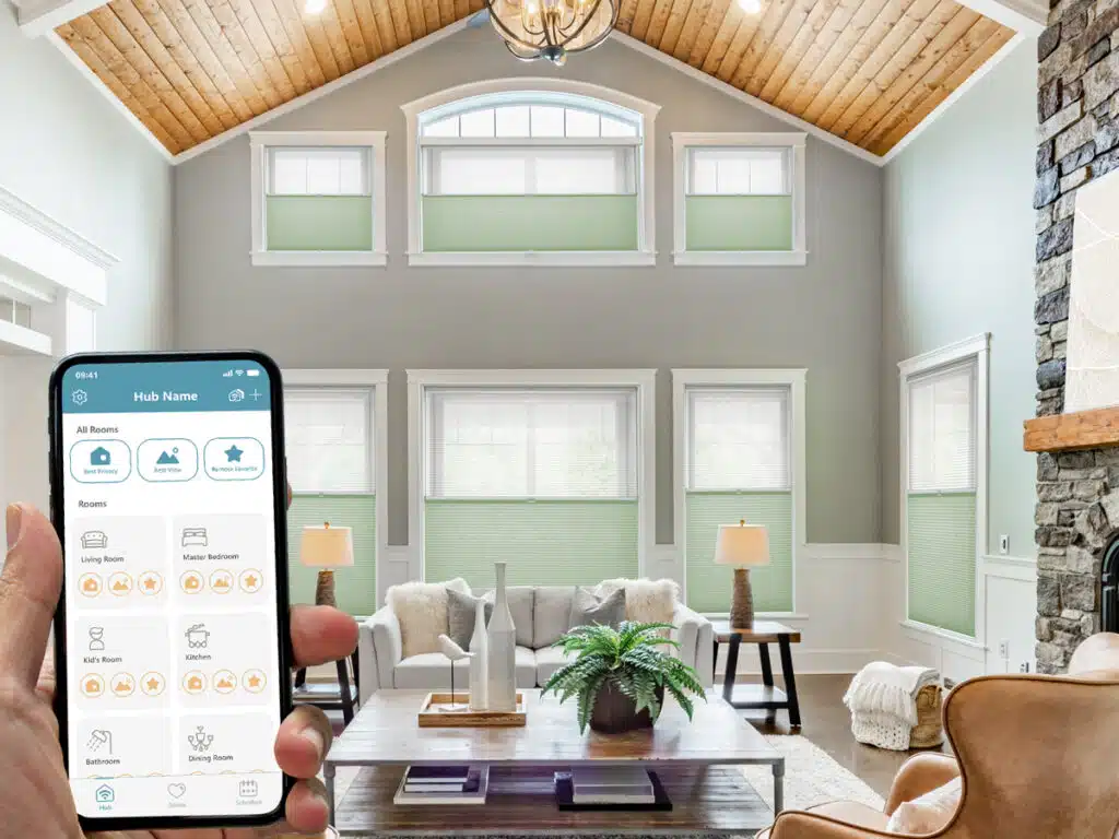 Honeycomb shades are an excellent choice for high windows, offering a perfect blend of aesthetic and energy efficiency. The unique cellular structure of honeycomb shades traps air within the cells, providing an extra layer of insulation that helps regulate the temperature in your home. This feature is particularly beneficial for high windows, which are often more exposed to direct sunlight. Our Portrait™ Honeycomb Shades can also be motorized, which is perfect for hard-to-reach high windows, eliminating the need for manual adjustments and making it easier to maintain the perfect level of light control and privacy throughout the day.