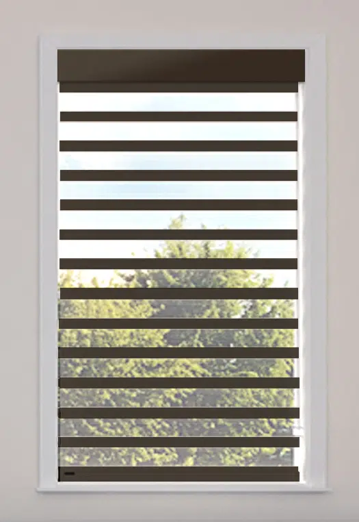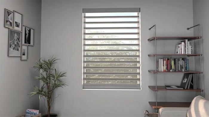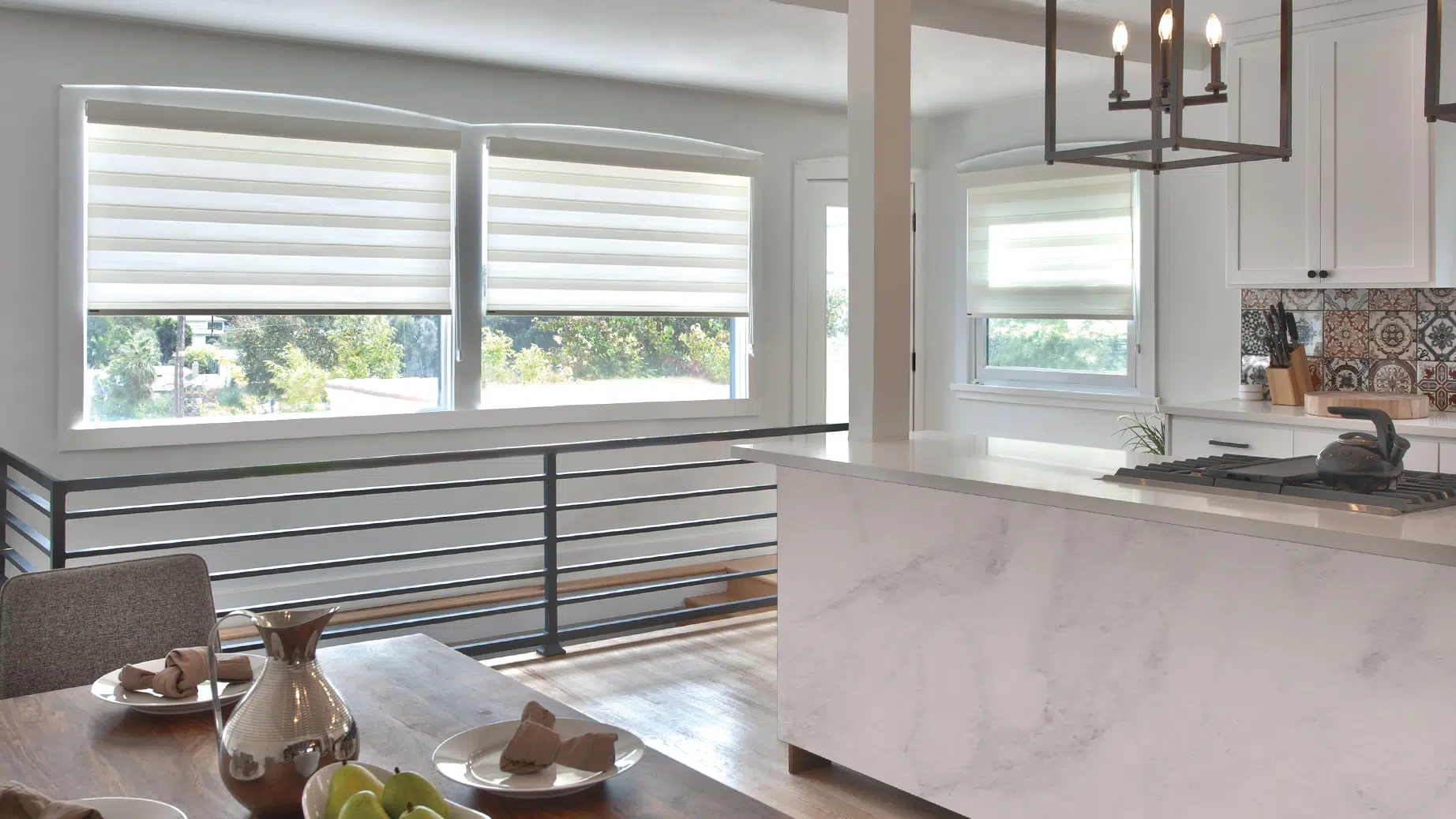 Sheer shades combine a banded, layered shade with a sheer fabric vane shade for a sleek and modern effect.