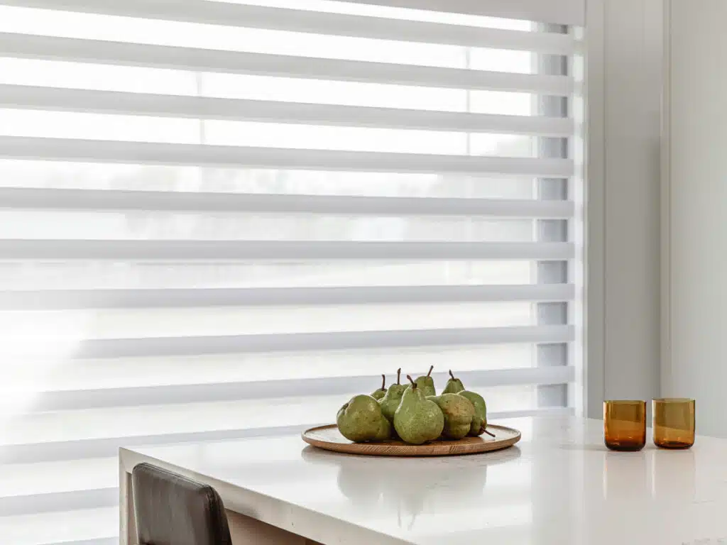 - Day-to-night shutters: DayNite™ shutters are a revolutionary window treatment that seamlessly blends light-filtering and blackout capabilities in one design. With just a simple adjustment, you can transition between a soft, diffused light during the day and total darkness at night for privacy or better sleep.