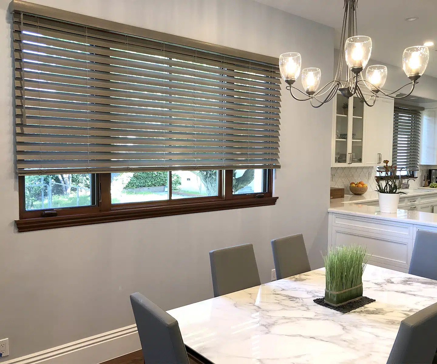 It honestly depends on your own personal style and preferences! If you like a more airy and light feel in your dining room, then PerfectSheer™ might be the way to go. If you prefer something a little more structured and classic, then Ultimate™ faux wood blinds could be better suited for your taste.