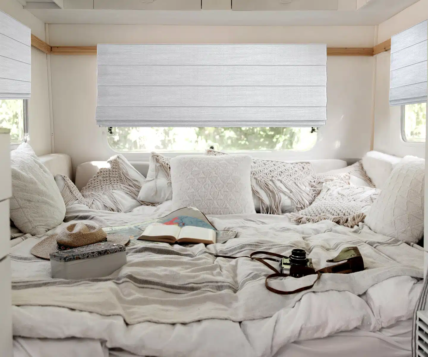 Roller shades have a compact design, making them ideal for RVs with limited space. RV Window Shades offer varying light levels, so campers can adjust the amount of direct sunlight entering the space and increase privacy control while on the road. Our Soluna™ Roller Shades are an excellent choice!