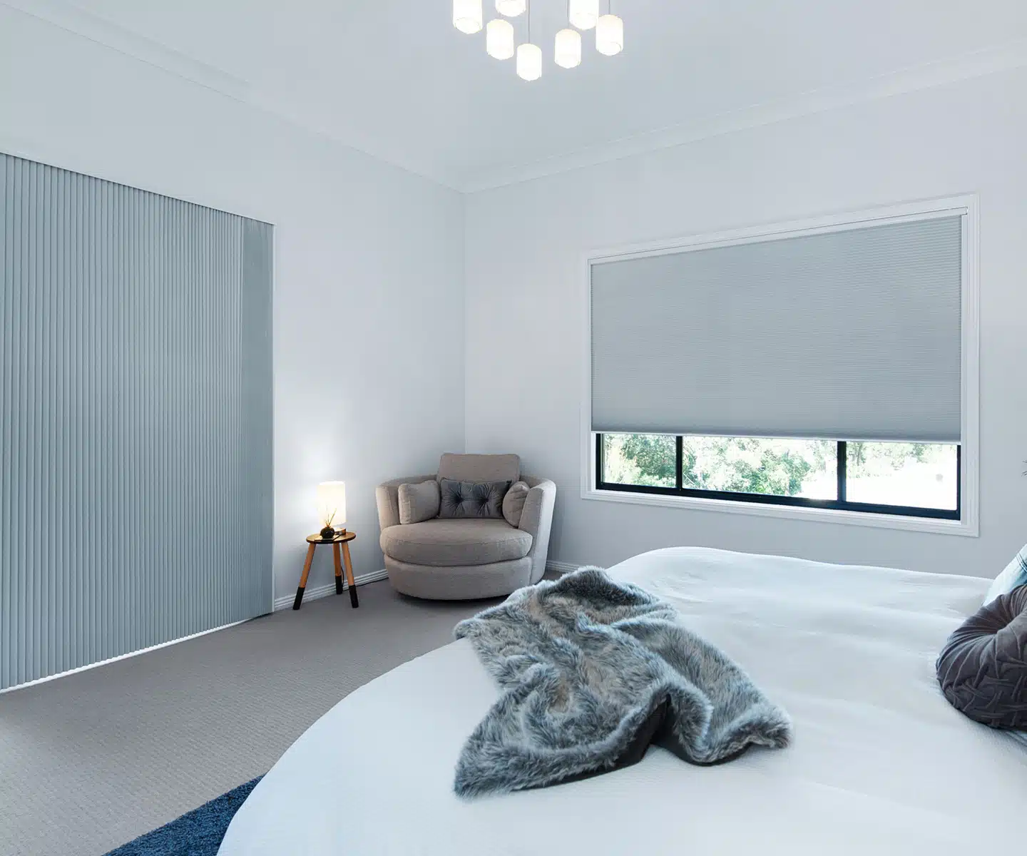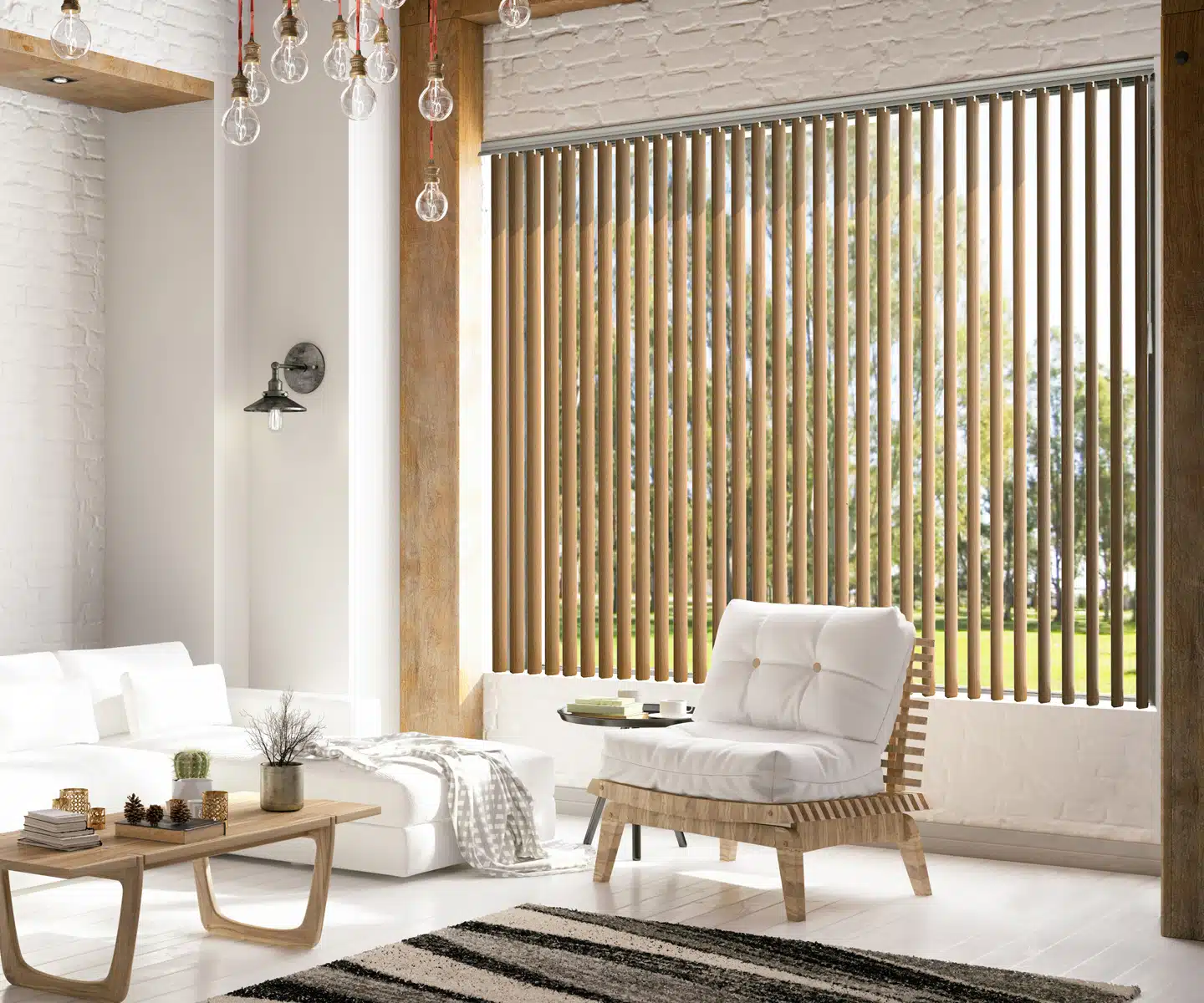 Vertical blinds are a unique and functional choice for large windows. Made up of slats that are connected to a track, vertical blinds offer you full control over light and privacy. Synchrony™ combines the traditional practicality of vertical blinds with the improved durability and performance of modern technology.