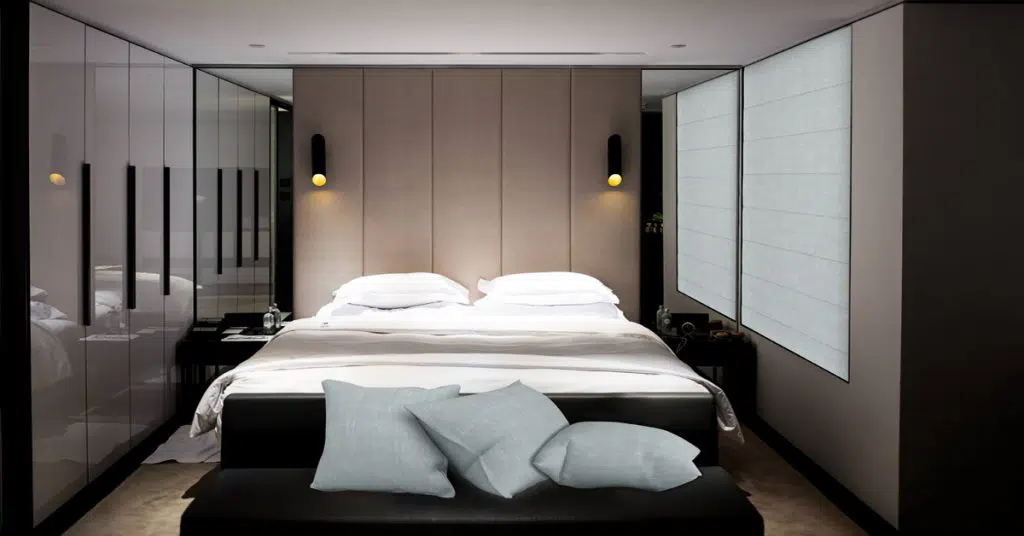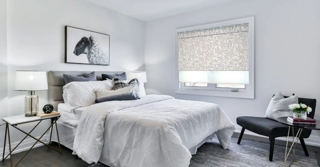 When the bedding, storage, and sitting areas are sorted, it’s time to think beyond. Having a conversation on how you will manage light control and privacy with window coverings early on helps you to create a unified look and create a more comfortable and livable space.