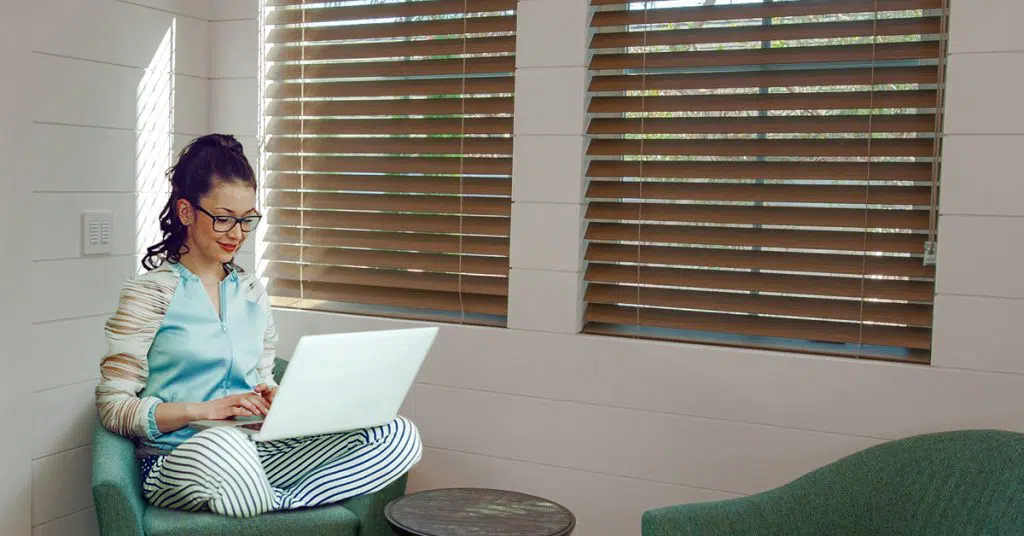 You can also create a small sitting area to bring it to a full, hotel-style circle. Throw down an area rug to create separation and complete the look with a couple of comfortable armchairs and a side table. As for window coverings, select from a gallery of wood stains to match your furniture or flooring perfectly. Introduce your guests to the richness and beauty of natural materials with Norman® Wood Shutters. They’re the perfect way to create the ideal place for your guests to enjoy some tea or coffee in total comfort.
