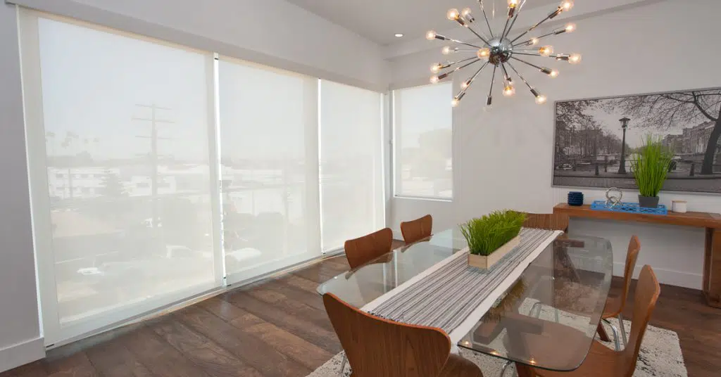 Millennial pink and the contrast of black and white modern aesthetics have been reigning high for the last few years. But recently, bohemian or what we call boho-chic has been popping up more as people try to bring some warmth into their living spaces. This boho-chic, utilizes many earth-tones but also relies on warm white walls and accents of warm wood colors. Off-white roller shades, roman shades, faux wood blinds, or even wood shutters or wood blinds, are a genius complement.