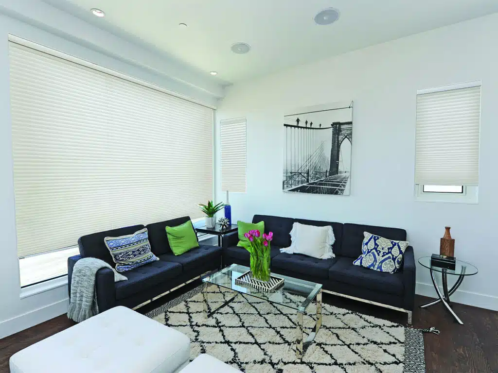 Cellular shades, or honeycomb shades, are known for their energy-efficient properties. Their honeycomb structure traps air and provides insulation, helping to regulate the temperature in your room and keeping it comfortable year-round.