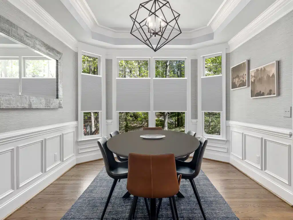 When it comes to ensuring privacy in the dining room, especially during intimate gatherings or family meals, cellular shades stand out as the best choice. Portrait™ honeycomb shades feature a unique honeycomb design that traps air, providing excellent insulation and privacy.