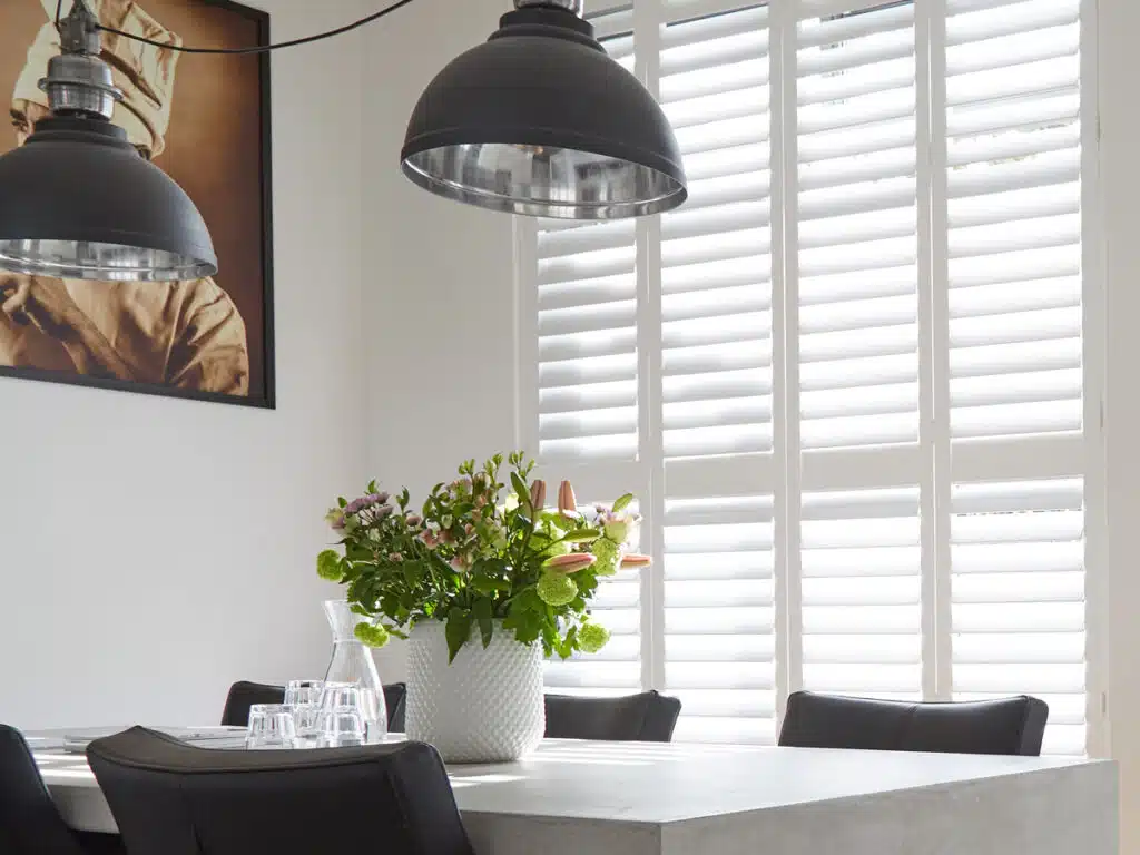 - Shutters: Timeless and versatile, shutters offer a classic look with adjustable louvers for controlling light and privacy. Available in various materials such as wood, vinyl, or wood composite, they add a touch of sophistication to any dining room.