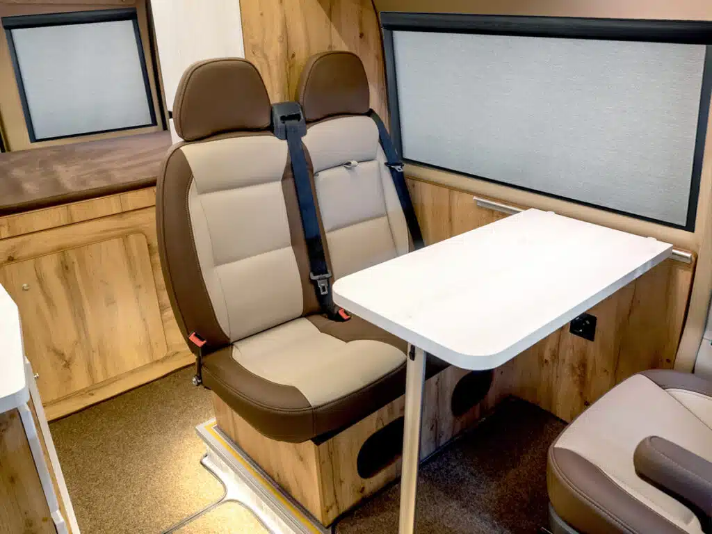 Cellular shades excel in providing superior insulation and versatility, making them a great choice for increasing comfort and adaptability in the RV. Their unique honeycomb structure traps air within the cells, so no matter what region you travel through, they effectively insulate the RV’s interior against heat loss in cooler temperatures and heat gain in warmer climates.