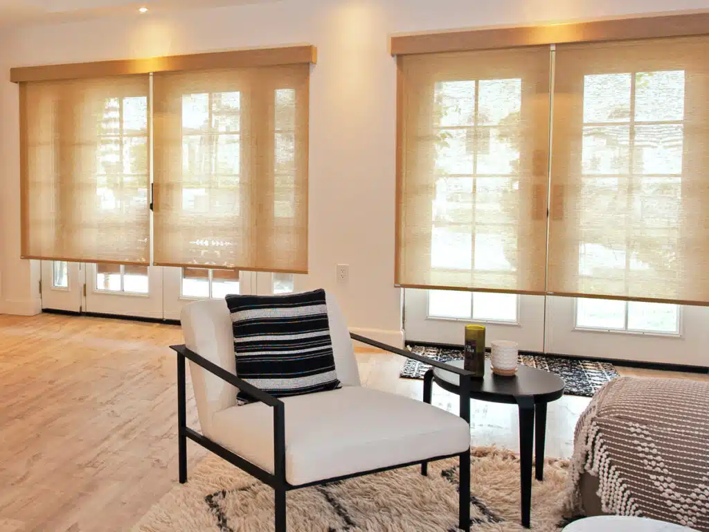 Solar shades are the best choice for homes located in year-round warm climates. They are popular in living rooms where homeowners want to maintain a view, control glare on TVs and other screens, and protect furniture from sun damage. Solar shades are also commonly used in business offices to reduce glare on computer screens and enhance productivity.
