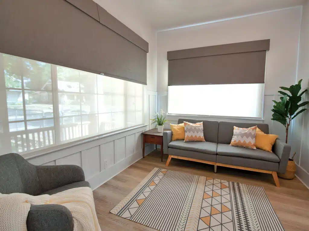 For example, our Soluna roller shades will be a great aesthetic addition to your space and it will also protect your furniture from UV rays. Contact a team member to learn more about design ideas and customization options today!