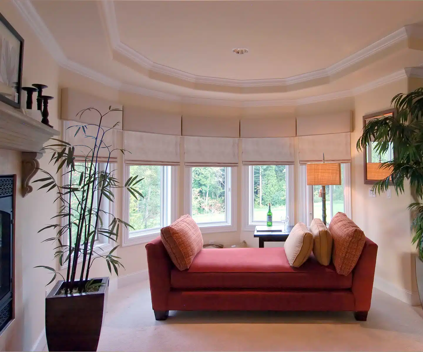 Roman shades are great for bow windows, combining timeless elegance with practical functionality to enhance the beauty and versatility of these architectural gems. Their soft, luxurious folds create a sophisticated aesthetic that complements the graceful curves of bow windows.