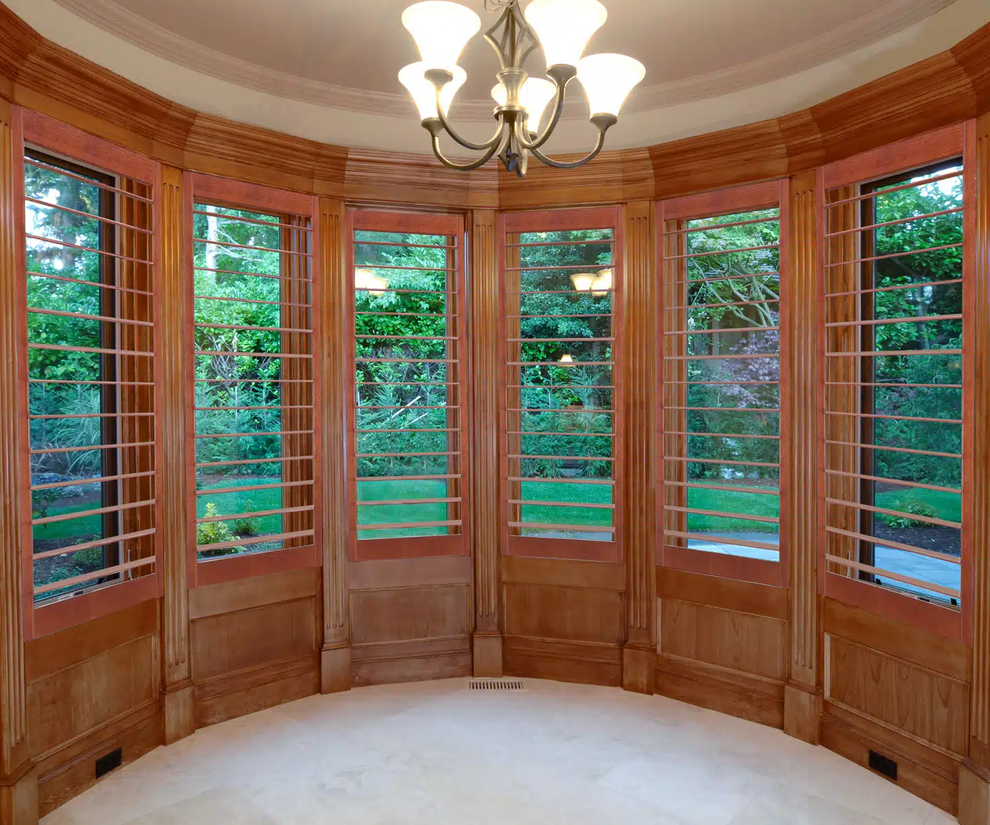 Their customizable sizing ensures a perfect fit for each window within the bow setup. Additionally, durability and innovative product design ensure that Normandy® wood shutters will remain a timeless and enduring investment for your home.