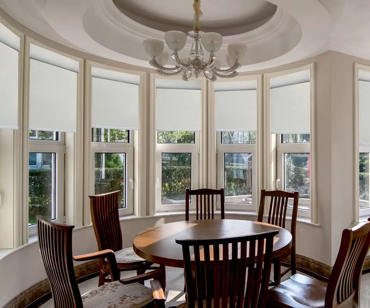 Designed to offer a seamless blend of style and functionality, cellular shades, roller shades, and roller shades all provide a smooth and uniform appearance across the multiple windows of a bow configuration. Their versatility, energy efficiency, and adaptability make them a top choice for bow windows.