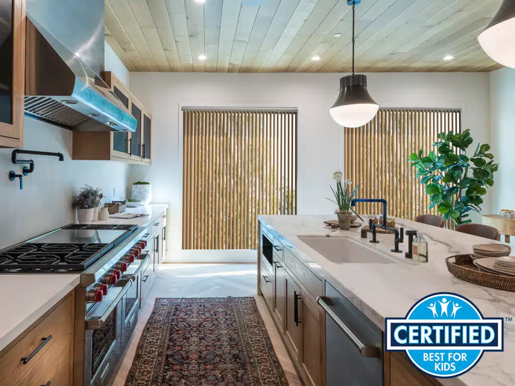The kitchen is the heart of the home where family gathers. Synchrony™ vertical blind’s cordless design is certified “Best for Kids™”, and eliminates dangerous cords that can be a serious risk for children and pets alike. Constructed to provide extra durability against scuffs and dents, it’s a great option for french doors and floor length windows.