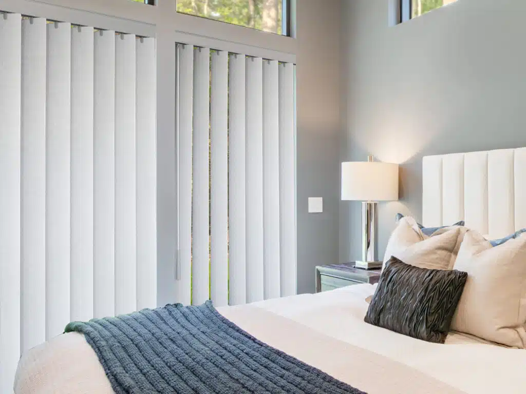 Vertical blinds are another great option particularly if your bedroom contains large windows or glass doors. Our Synchrony™ Vertical Blinds have revolutionized the traditional vertical blind. The valance-free Polydeco headrail offers a sleek and modern appearance with great light-blocking capability and no unattractive valances to fall off, break or fail.