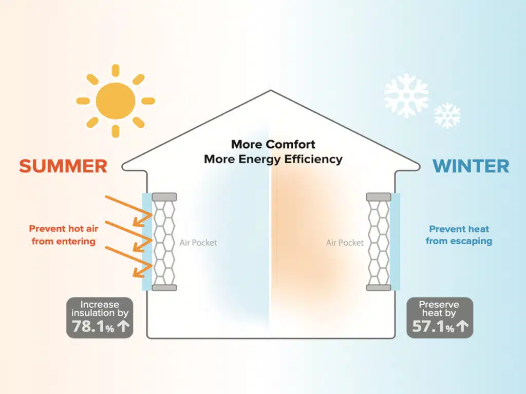 - Energy-efficient Window Coverings: Insulated shades or thermal shades help keep your home cooler in summer and warmer in winter, reducing energy consumption and improving the overall comfort of your home. By minimizing heat loss in colder months and blocking out excess heat during warmer months, these shades help maintain a more consistent indoor temperature, potentially lowering your utility bills and reducing your environmental footprint.